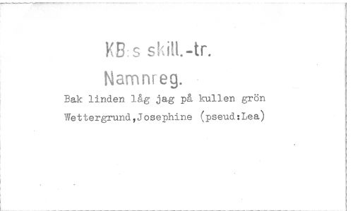 //// KB:s skal-tr. //// Namnreg. //// Bak linden låg jag på kullen grön Wettergrund,Josephine (pseud:Lea) ////