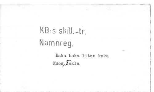//// KB:s spill. -tr. //// Namnreg. //// Baka baka liten kaka Knös ,Ekla ////