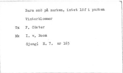 //// Bara snö på marken, intet löf i park en_ Vinterblommor //// Tx F. Cöster Nk I. v. Boom //// Sjung: H. 7. nr 163 ////