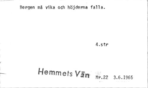 //// Bergen må vika och höjderna falla. //// 4.str //// Hemmets Vän Nr.22 3.6.1965 ////