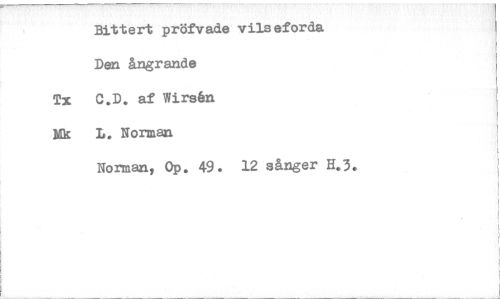 //// Bittert pröfvade vilseforda //// Den ångrande //// Tx C.D. af Wirsån //// Mk L. Norman //// Norman/ Op. 49. 12 sånger 11.3. ////