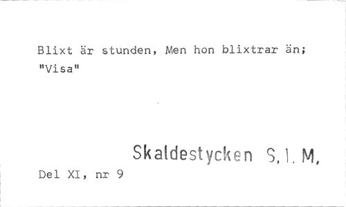 //// Blixt är stunden, Men hon blixtrar än; "Visa" //// Skatelestyck n SJ. M, //// Del XI, nr 9 ////