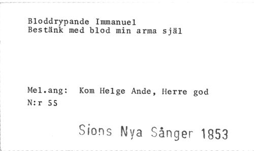 //// Bloddrypande Immanuel //// Bestänk med blod min arma själ //// Mel.ang: Kom Helge Ande, Herre god N:r 55 //// Sions Nya Sånger 1853 ////