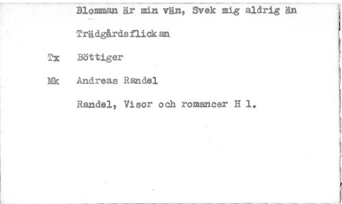 //// Blomman är min vän, Svek mig aldrig än //// Trädgårds flick an //// Tx Böt tiger //// Nk Andreas Randel //// Randel, Visor och romancer H 1. ////