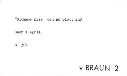 //// "Blommor nyss, och nu blott snö, Snön i april. //// S. 304 //// v BRAUN 2 ////