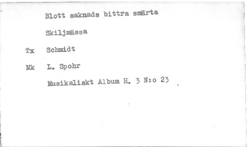 //// Blott saknads bittra smärta //// Skiljmässa //// Tx Schmidt //// Mk L. Spohr //// Musikaliskt Album H. 3 N:o 23 ////