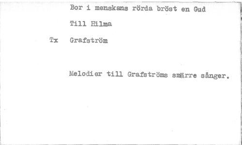 //// Bor i =makans rörda bröst en Gud Till Hilma //// Ta Grafström //// Melodier till Grafströms smärre sånger. ////