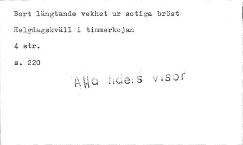 //// Bort längtande vekhet ur sotiga bröst Helgdagskväll i timmerkojan //// 4 str. s. 220 //// s ////