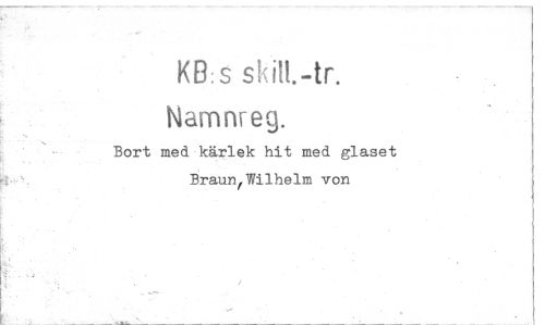 //// KB: s skill.-tr. //// Namnreg. //// Bort med kärlek hit med glaset BraunfWilhelm von ////