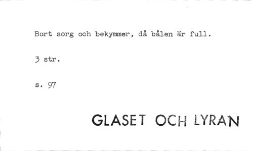 //// Bort sorg och bekymmer, då bålen är full. 3 str. //// s. 97 //// GLASET OCH LYRAN ////