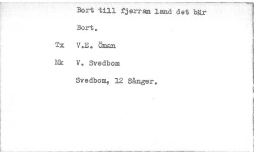 //// Bort till fjerran land det bär //// Bort. //// Tx V.E. Örnan //// Mk V. Svedbom //// Svedboni, 12 Sånger. ////