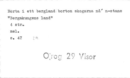 //// Borta i ett bergland bortom skogarna nå' n-stans //// "Bergakungens land" //// 4 str.. //// mel. //// s. 47 //// isur ////