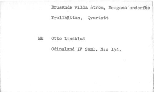 //// Brusande vilda ström, Morgana underfke Trollhättan. Qvartett //// Mk Otto Lindblad //// Odinslund IV Saml. N:o 154. ////
