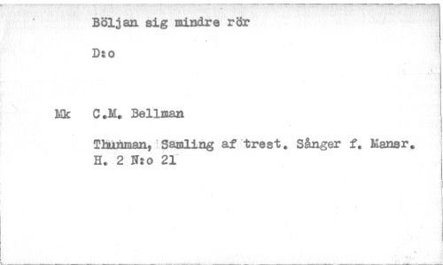 //// Böljan sig mindre rör D:o //// 1-k C.M. Bellman //// nunman, Samling af trest. Sånger f. Maner. H. 2 N:o 21 ////