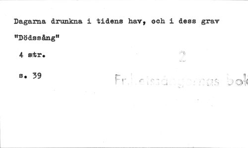 //// Dagarna drunkna i tidens havy och i dess grav "Dödssång" //// 4 str. //// 9. 39 ////
