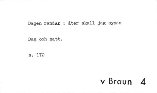 //// Dagen randas ; åter skall jag synas Dag och natt. //// s. 172 //// v Braun 4 ////