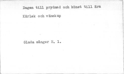 //// Dagen till prydnad och könet till ära Kärlek och vänskap //// Glada sånger H. 1. ////