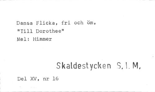 //// Dansa Flicka, fri och öm, "Till Dorothee" Mel: Himmer //// Skaldestycken S, 1 M, //// Del XV, nr 16 ////