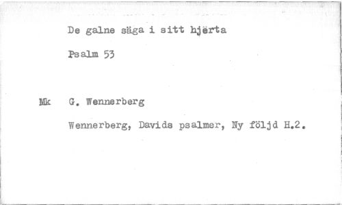 //// De galne säga i sitt hjärta Ps alm 53 //// Nk G. Wennerberg //// wAnnerberg, Davids psalmer, Ny följd H.2. ////