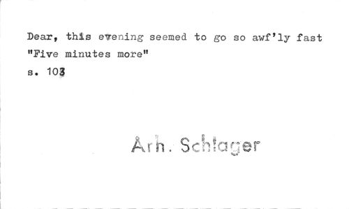 //// Dear, this evening seemed to go so awf'ly fast "Five minutes more" //// s. 103 //// n . Sch Okr ////