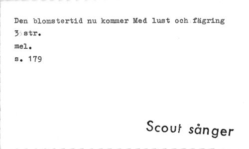 //// Den blomstertid nu kommer Med lust och fägring 3 str. //// me1. //// s. 179 //// Scout sånger ////