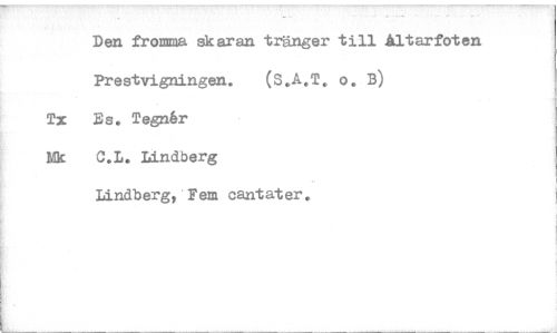//// Den fromma skaran tränger till Altarfoten //// Prestvigningen. (S.A.T. o. B) //// Tx Es. Tegnior //// Nk C.L. Lindberg //// Lindberg, Fem cantater. ////