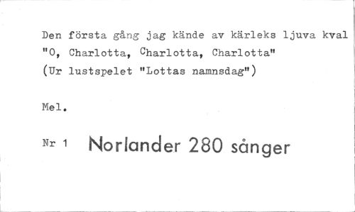 //// Den första gång jag kände av kärleks ljuva kval "0, Charlotta, Charlotta, Charlotta" (Ur lustspelet "Lottas namnsdag") //// Mel. //// Nr 1 Norlander 280 sånger ////