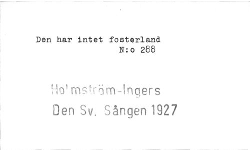 //// Den har intet fosterland //// N:o 288 //// Ho'mstrim-Ingers //// Den Sv. Sången 1927 ////