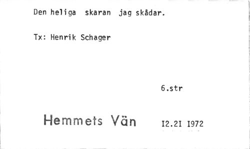 //// Den heliga skaran jag skådar. Tx: Henrik Schager //// 6.str //// Hemmets Vän 12.21 1972 ////