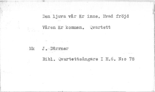 //// Den ljuva vår är inne. Hvad fröjd Våren är kommen. Qvartett //// råk 3. Xdrrner //// Qvartetterångare I H.6. N:o 78 ////