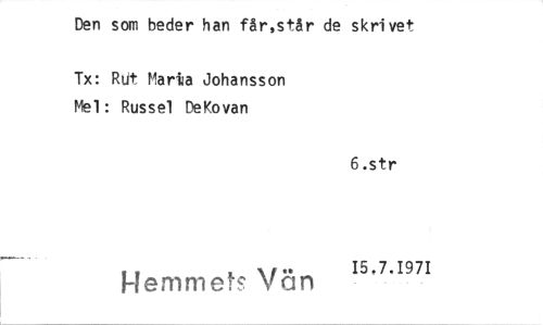 //// Den som beder han får,står de skrivet //// Tx: Rtjt Marta Johansson Mel: Russel DeKovan //// 6.str //// Hemmets Vän 15,7.1971 ////