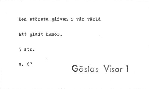 //// Den största gåfvan i vår värld Ett gladt humör. 5 str. //// s. 67 Göstas Visor 1 ////