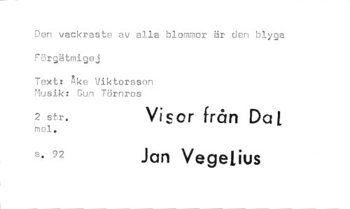 //// Den vackraste av alla blommor är den blyga Förgätmigej //// Text: Åke Viktorsson Musik: Gun Törnros //// 2 str. Visor från Da //// mel. //// s. 92 Jan Vegelius ////