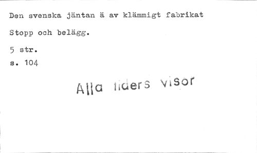 //// Den svenska jäntan ä av klämmigt fabrikat Stopp och belägg. //// 5 str. s. 104 //// \fisor ////