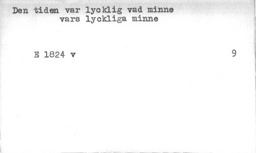 //// Den tiden var lycklig vad minne vars lyckliga minne //// E 1824 v 9 ////
