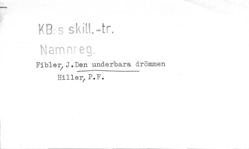 //// KB: s skift.-tr. //// Namnren.. //// Fibler J.Den underbara drömmen //// P.F. ////