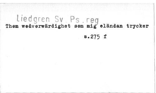 //// Liedgren Sv Ps . reg //// Them weiwerwärdighet alm mig" eländan trycker //// a.275 f ////