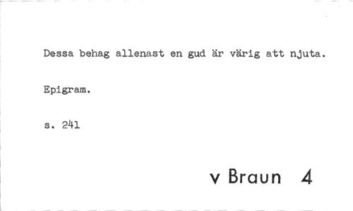 //// Dessa behag allenast en gud är värig att njuta. Epigram. //// s. 241. //// v Braun 4 ////