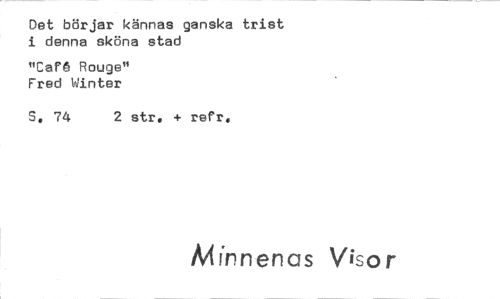 //// Det börjar kännas ganska trist i denna sköna stad //// "Cafå Rouge" Fred Winter //// S. 74 2 str. + raft. //// Mirnenas Visor ////