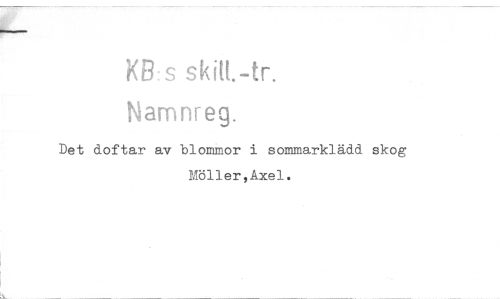 //// KB: s skilt.-tr. //// Namnreg. //// Det doftar av blommor i sommarklädd skog Möller,Axel. ////