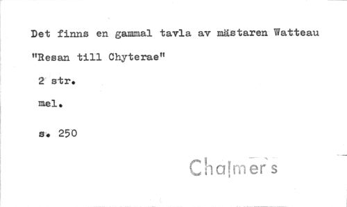 //// Det finns en gammal tavla av mästaren Watteau "Resan till Chyterae" //// 2 str. //// mel. //// e. 250 //// ar .1 er s ////