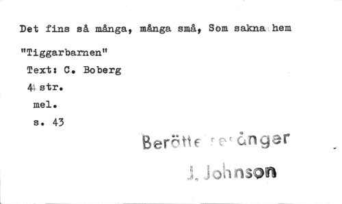//// Det fins så många, många små, Som sakna hem //// "Tiggarbarnen" //// Text: 0. Boberg //// 41-str. mel. s. 43 //// Bertt€ (.7" ringer //// q //// )4 on nsQn ////