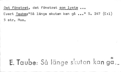 //// Det fönstret, det fönstret som lyste ... //// Evert Taube;"Så länge skutan kan gå ..." S. 247 (E:1) 5 str. Mus. //// o //// E. Taube: Så länge skutan kan ga... ////