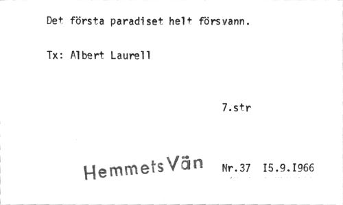 //// Det första paradiset helt försvann. Tx: Albert Laurell //// 7.str //// HemmetsViin Nr.37 15.9.1966 ////