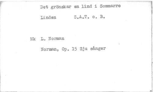 //// Det grönskar en lind i Sommarro //// Linden S.A.T. o. B. //// Mk L. Norman //// Norman, Op. 15 Sju sånger ////
