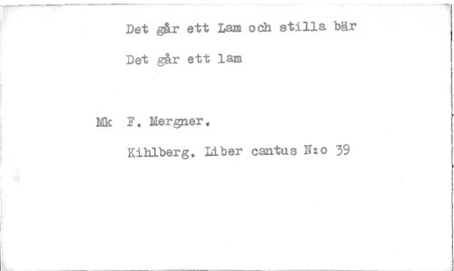 //// Det går ett Lam och stilla bär Det går ett lam //// Mk F. Mergner. //// Kiblberg. Liber cantus N:o 39 ////