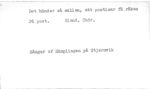 //// Det händer så sällan, att postisar få råkas //// På post. Bland. Chör. //// Sånger af Hämplingen på Stjernvik ////