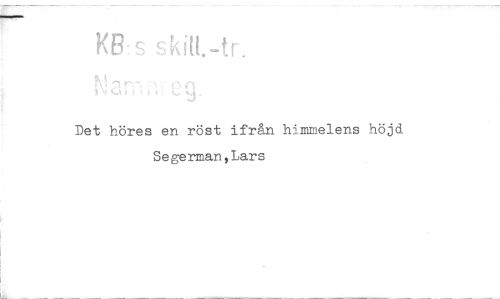 //// KB:s skit[. //// Det höres en röst ifrån himmelens höjd Segerman,Lars ////