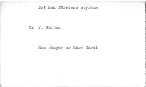 //// Det kan förvisso styrkas //// Tx V. Sardou //// Sex sånger ur Herr Garat ////