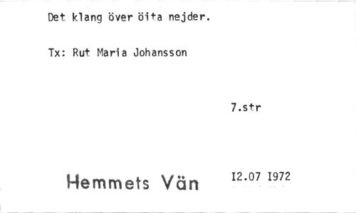 //// Det klang över öita nejder. Tx: Rut Maria Johansson //// 7.str //// Hemmets Vän 12.07 1972 ////